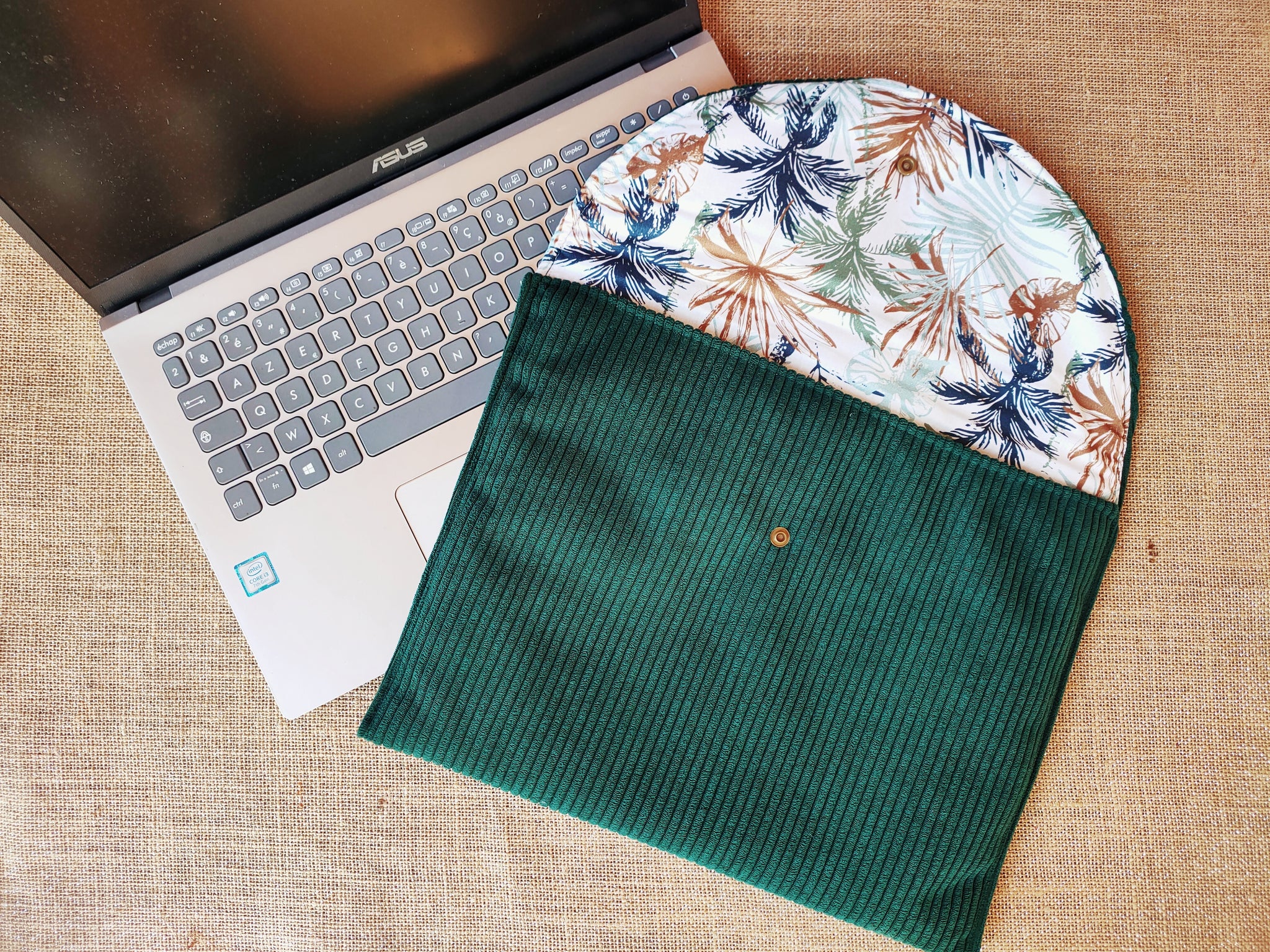 Cette pochette est réalisée avec un velours côtelé haut de gamme à l'extérieur, offrant une texture douce, moderne et résistante. L'intérieur est doublé d'un tissu en coton soigneusement choisi pour sa douceur et sa capacité à préserver votre appareil des micro-rayures.